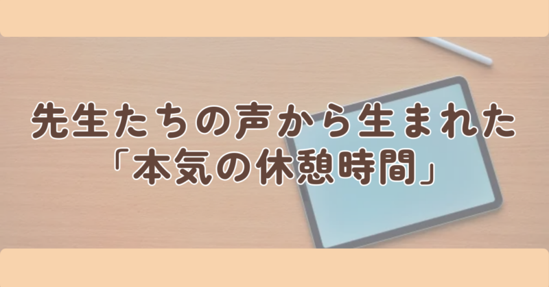 先生たちの声から生まれた「本気の休憩時間」